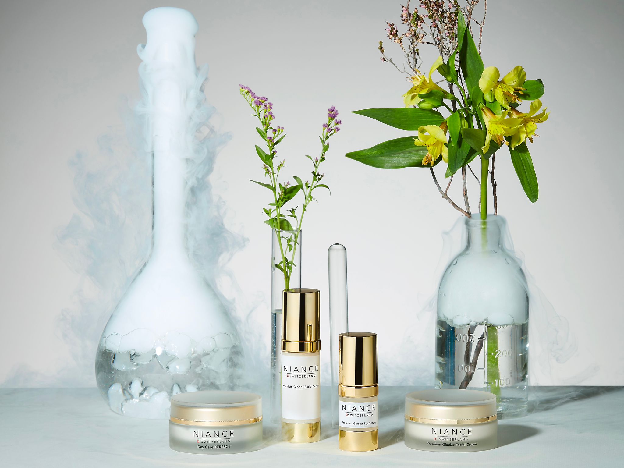 NIANCE skincare line contains the Swiss Glacier Complex®, a proprietary blend of glacier water, Alpine botanicals, minerals, and advanced actives that hydrate, repair, and protect the skin barrier.