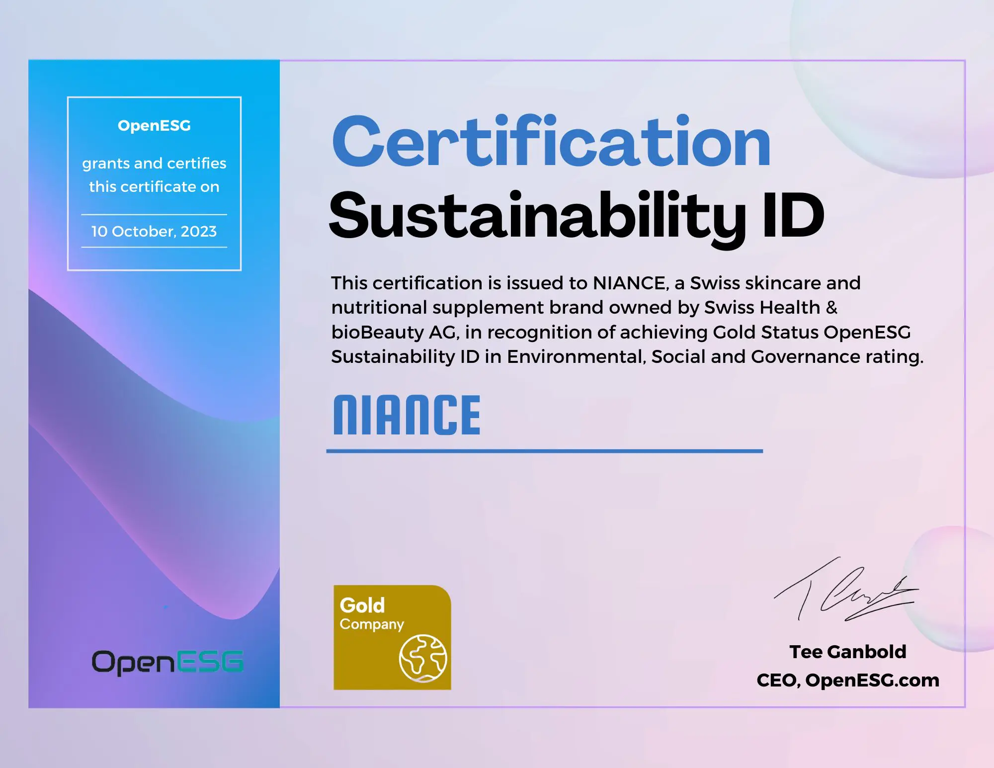 Finally, in the governance domain, NIANCE adheres to transparency and disclosure standards, fosters a culture of ethics and integrity, and implements effective risk management and compliance measures. The company also promotes active engagement with its stakeholders and shareholders.